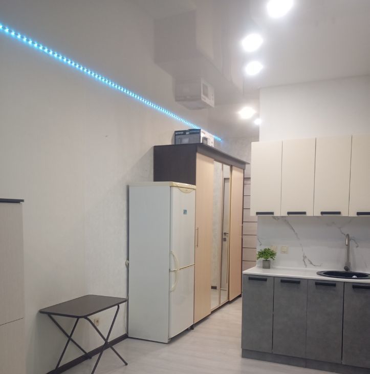 В квартире сделан косметический ремонт, что создаёт приятную атмосферу для проживания. Пространство студии грамотно зонировано: жилая площадь составляет 13.4 кв. м, а кухня — 6.7 кв. м. В комнате и на кухне имеется вся необходимая мебель. В ванной комнате установлена ванна, поэтому вы сможете расслабиться после трудового дня. Из техники в вашем распоряжении холодильник и стиральная машина.