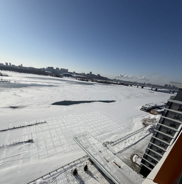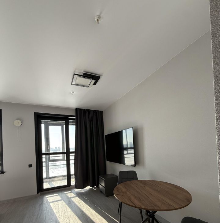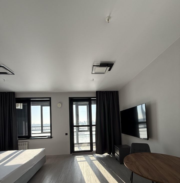 Студия только после ремонта, в ней никто не жил. Площадь - 27 м2. Окна выходят на Обь, открывается шикарный вид на рассветы, закаты и сам город. Нареканий по состоянию - нету.