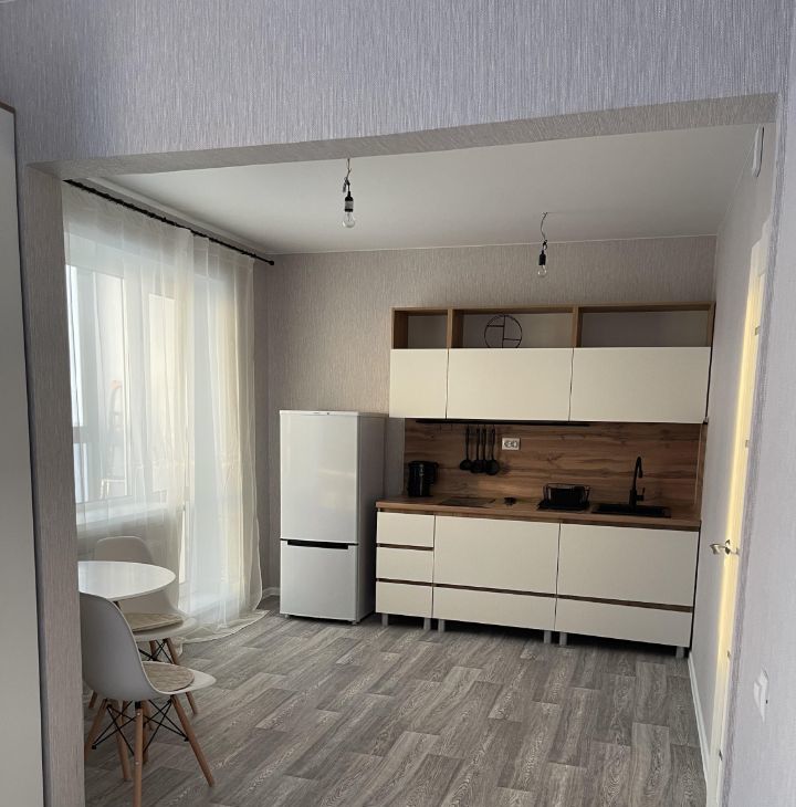 Новый дом,высокий 18 этаж,новая мебель и техника.кухонная и спальная зона отделены небольшой стенкой.
