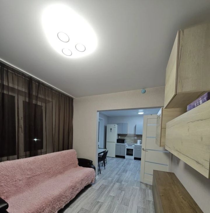 В квартире есть все необходимое для жизни: косметический ремонт, мебель в комнате, холодильник и стиральная машина. Планировка включает совмещенный санузел с ванной, а также одну лоджию с видом на улицу. Благодаря этому пространство квартиры максимально функционально и удобно.