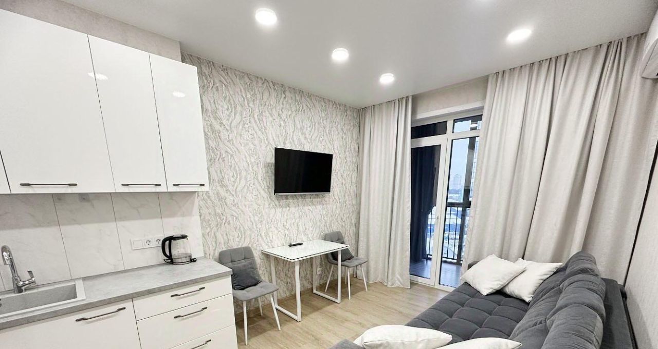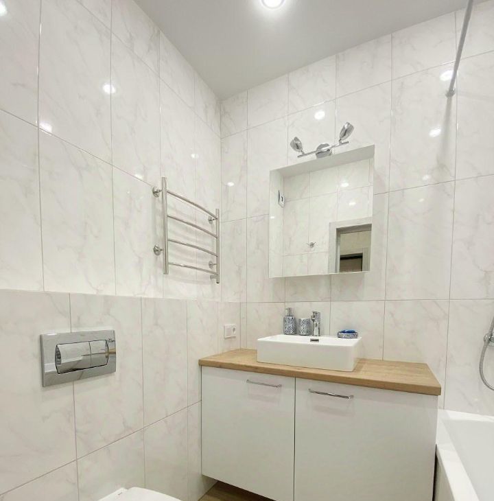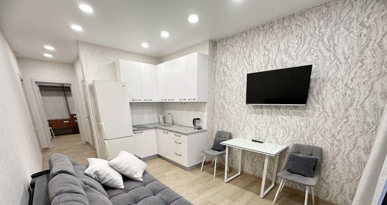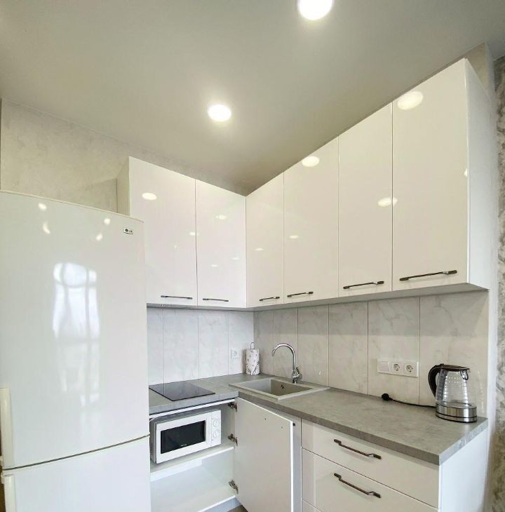 Идеальный ремонт, есть вся необходимая мебель и техника вплоть до посуды.