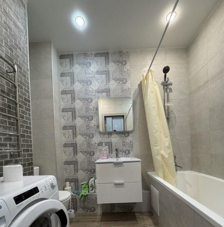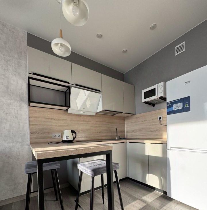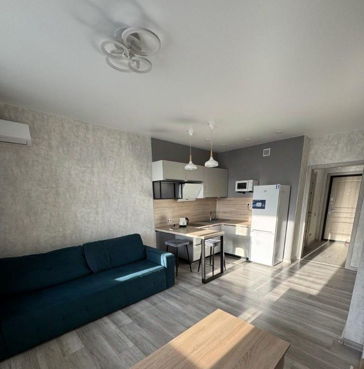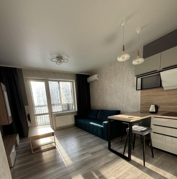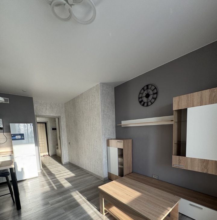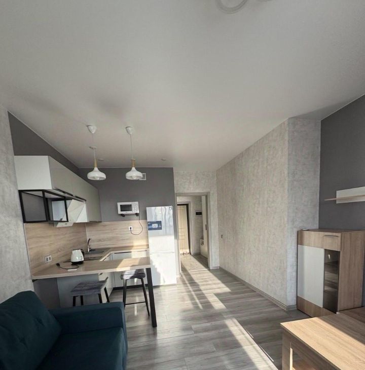 В квартире сделан качественный евроремонт. Пространство организовано в формате студии, что создаёт ощущение простора и свободы. Кухня оборудована необходимой мебелью и техникой, включая холодильник и стиральную машину. Ванная комната оснащена ванной, что позволит вам расслабиться после долгого дня.