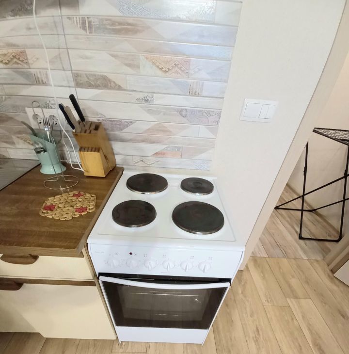 есть бытовая техника: электропечь, холодильник, СВЧ, телевизор ЖК, стиральная машина-автомат, на длительный срок.