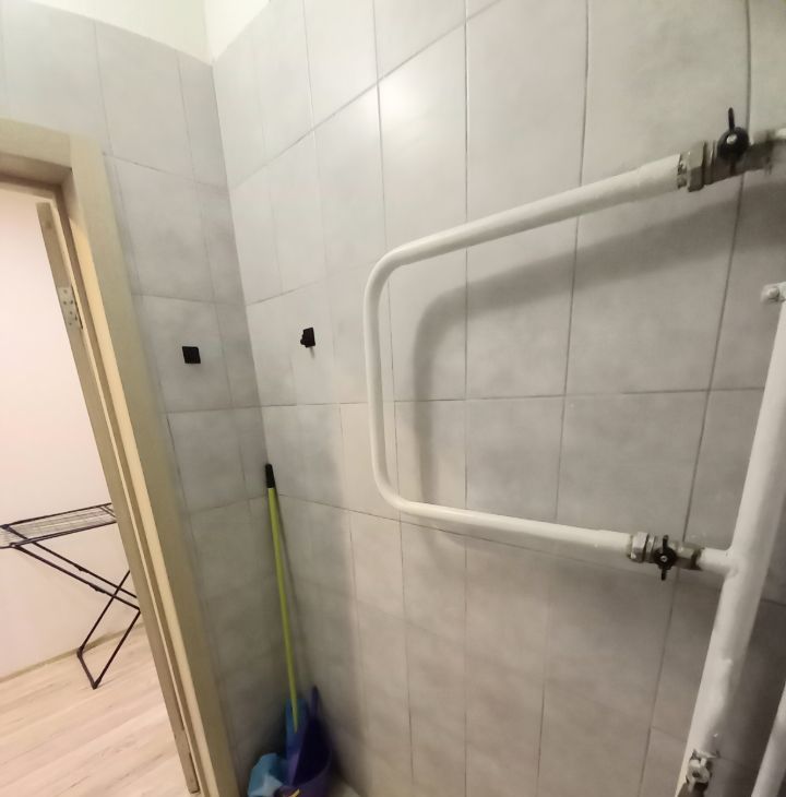 Обои, линолеум, кафель, натяжной потолок, лоджия не застекленная.