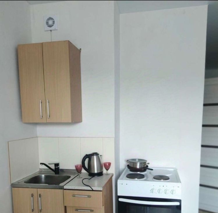 В квартире сделан ремонт, поэтому все выглядит современно и стильно. Просторная жилая зона площадью 12 кв. м плавно переходит в компактную кухню площадью 4кв. м. Здесь есть все необходимое для