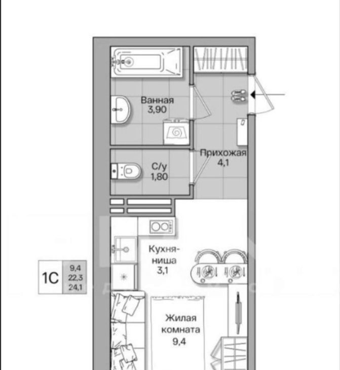 Студия Новосибирская область, Новосибирск ул. Адриена Лежена, 38 (26.0 м²)