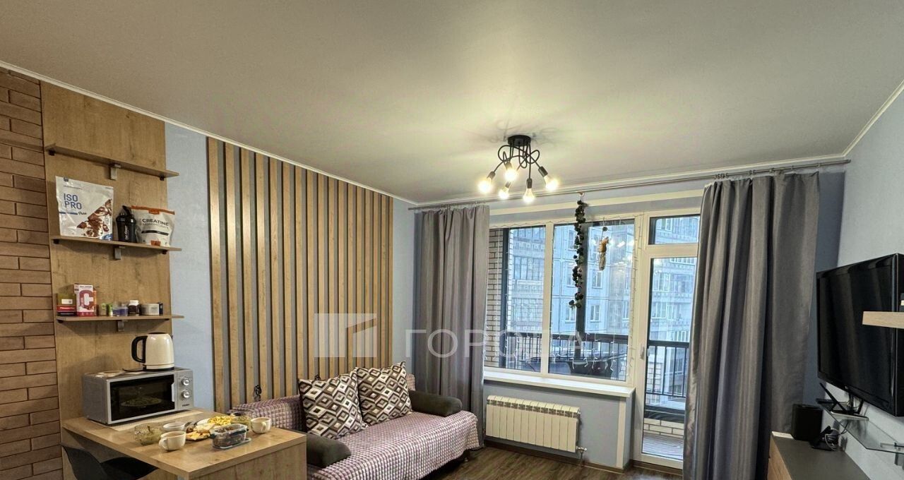 Предлагается в аренду уютная студия площадью 32 кв. м в современном кирпичном доме 2020 года постройки. Квартира расположена на 6 этаже 29-этажного здания. Высота потолков составляет 2.7 метра. Окна выходят на улицу, поэтому в помещении всегда светло и комфортно. Квартира с качественным евроремонтом, полностью укомплектована необходимой мебелью и техникой. В комнате и на кухне есть вся необходимая мебель, а также холодильник, телевизор и стиральная машина. В совмещенном санузле установлена душевая кабина. Лоджия позволяет насладиться свежим воздухом, не выходя из квартиры, по бокам лоджии два встроенных шкафа для межсезонных вещей и т.п. Дом оборудован двумя пассажирскими и двумя грузовыми лифтами, а также пандусом для удобства передвижения. Для автомобилей предусмотрена подземная парковка, расположенная рядом с лифтом, это оч удобно! Доп стоимость 10т.р. Высокоскоростной интернет обеспечит вам комфортное проживание и работу из дома. Район прекрасно развит: в пешей доступности находятся школы, детские сады, клиники и магазины. До станции метро "Золотая Нива" всего 15 минут пешком, что делает передвижение по городу быстрым и удобным.
