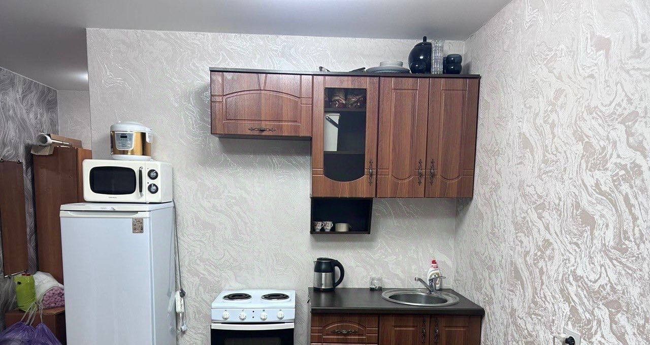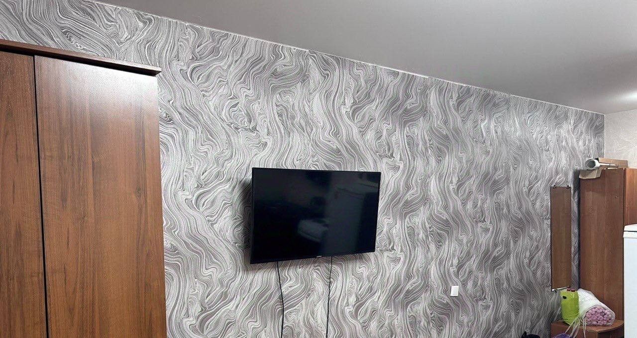 Сдается уютная студия на девятом этаже панельного дома, построенного в 2017 году. В квартире выполнен косметический ремонт, что создает приятную атмосферу. Просторная жилая зона площадью 22 м² включает в себя удобный диван и шкафы для хранения вещей. Из мебели также имеется телевизор и холодильник.