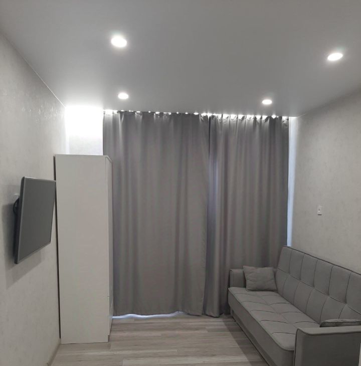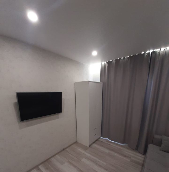 Квартира с евроремонтом, что гарантирует современный и стильный интерьер. Пространство студии обставлено мебелью, как в жилой, так и в кухонной зоне. В квартире есть всё необходимое для комфортной жизни: холодильник, телевизор, стиральная машина автомат, варочная панель, микроволновая печь, раскладной диван, стол, стулья, шкаф. Интернет кабель заведен в квартиру - WiFi роутер. Окна выходят во двор. Лоджия застеклена.