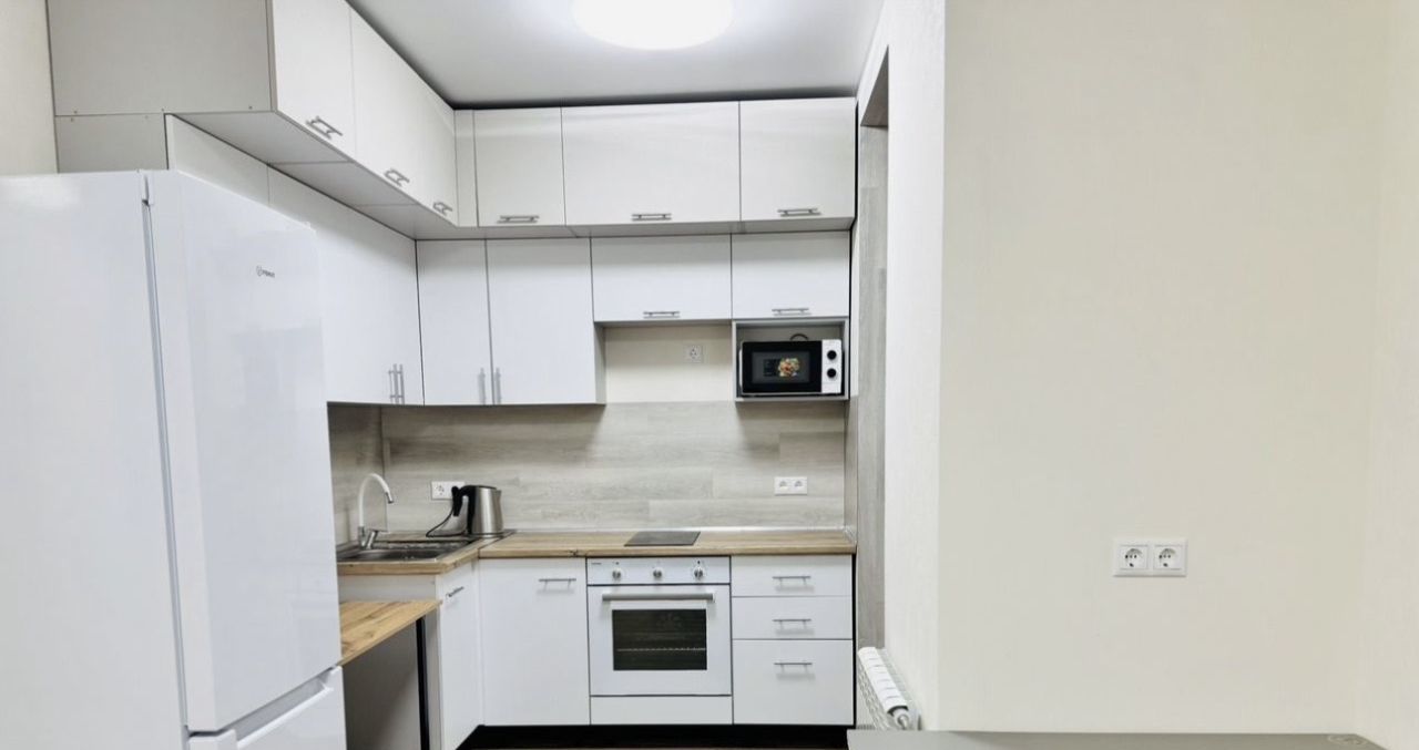 Внутри квартиры находится вся необходимая мебель, включая кухонный гарнитур, места для хранения одежды и спальные места. Квартира оборудована современными бытовыми приборами, такими как холодильник, плита, микроволновая печь, стиральная машина и телевизор, что обеспечивает всё необходимое для комфортной жизни. Эта квартира станет отличным выбором для комфортного проживания в стильном интерьере!