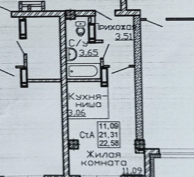 Студия Новосибирская область, Новосибирск ул. Ивана Севастьянова, 7 (22.6 м²)