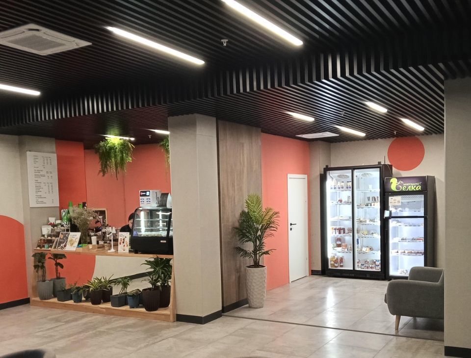 В отеле имеется ресепшен, охрана , просторный зал, кофейня, пекарня, различные услуги бьюти сферы ( салон красоты, маникюр, массаж)