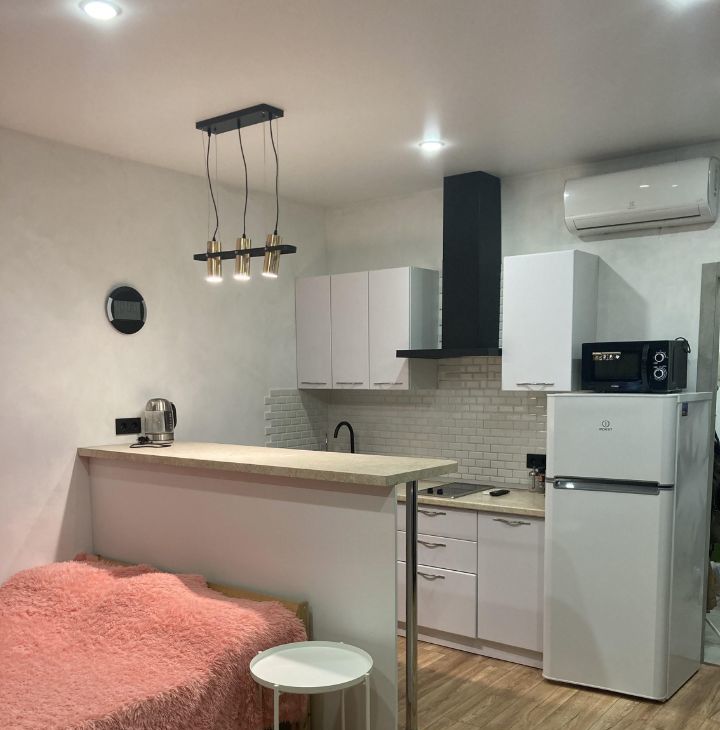 - Просторная студия с ремонтом и всей необходимой мебелью;
