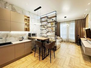 В квартире сделан косметический ремонт, что создает атмосферу уюта и свежести. Пространство студии грамотно организовано: здесь есть все необходимое для жизни. На кухне и в комнате имеется мебель, а также техника — холодильник и стиральная машина. Санузел совмещенный, оборудован ванной.
