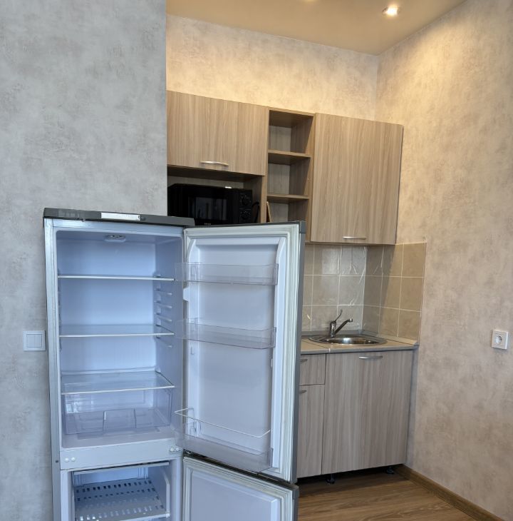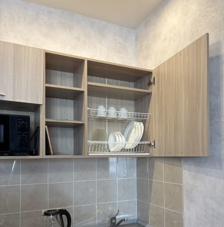 Сделан качественный ремонт. Новая мебель и техника — раскладной диван, комод, стулья, стиральная машина, микроволновка, чайник. Есть посуда и прочие мелочи.