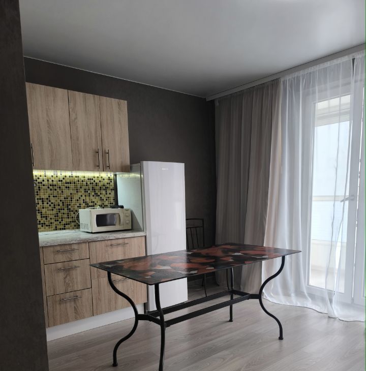 Квартира находится на 10 этаже 17 этажного дома. В квартире есть все необходимое для комфортного проживания мебель и бытовая техника ( телевизор, холодильник, стиральная машина , встроенный духовой шкаф и электроплита стеклокерамика, микроволновка, посуда) Есть застеклённая лоджия, выходящая во двор.
