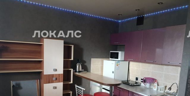 Сдается уютная студия с евроремонтом площадью 22 кв. м на 15 этаже 19-этажного дома, построенного в 2011 году. Высота потолков — 2.5 метра, окна выходят во двор, что обеспечивает тишину и уют. В квартире есть все необходимое для комфортного проживания: мебель на кухне и в комнате, холодильник и стиральная машина.