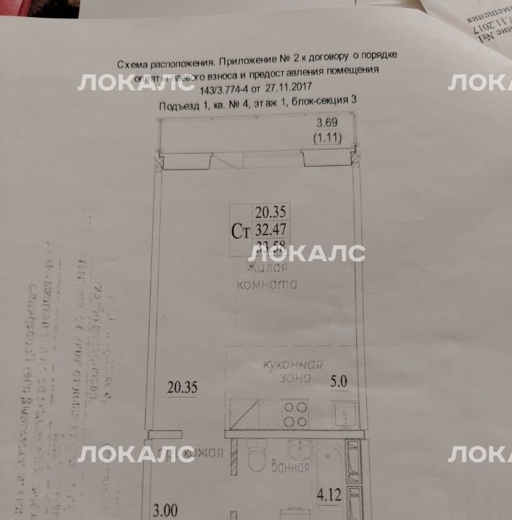 Студия Новосибирская область, Новосибирск ул. В. Высоцкого, 41/5 (32.4 м²)