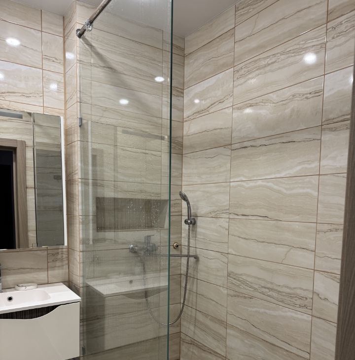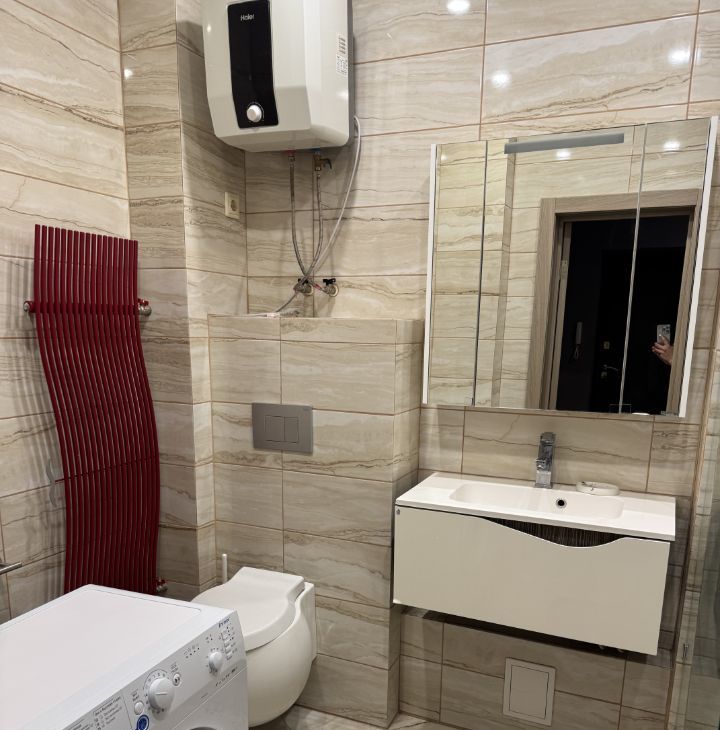 В квартире сделан современный евроремонт. Пространство грамотно зонировано, что делает проживание максимально комфортным. В квартире есть вся необходимая мебель и техника: кондиционер, холодильник, телевизор и стиральная машина,бойлер. В совмещенном санузле установлена душевая кабина. Изюминкой квартиры является просторный балкон, где можно наслаждаться свежим воздухом.
