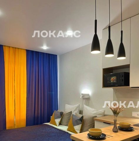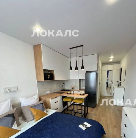 Студия полностью с мебелирована и укомплектована техникой: квартира готова к проживанию без дополнительных вложений.