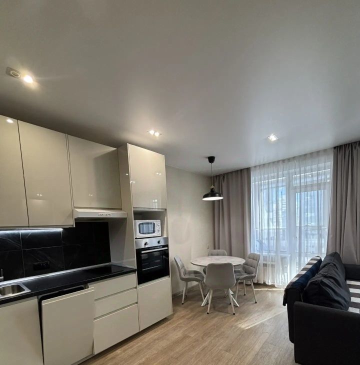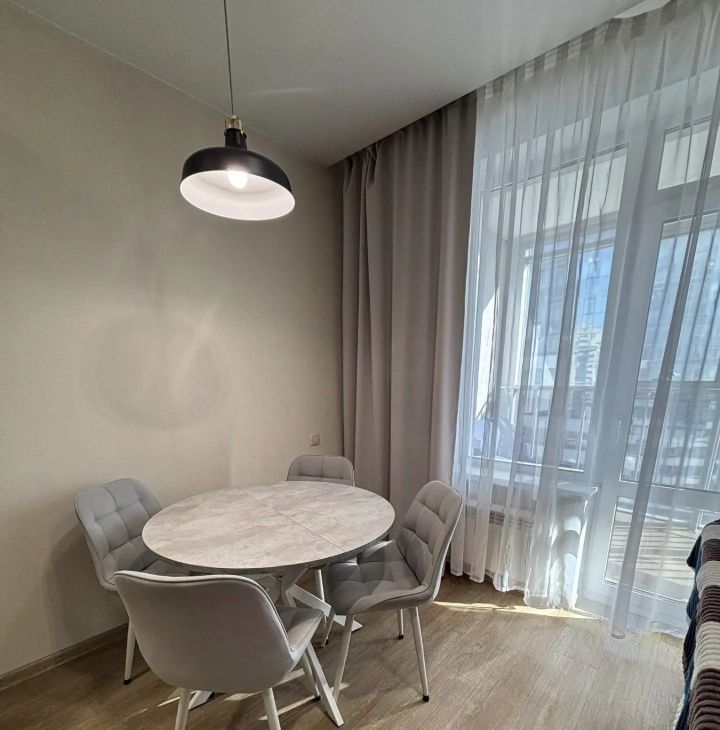 Сдается уютная студия в современном жилом комплексе на Октябрьской. Квартира находится на 9 этаже 28-этажного кирпичного дома, построенного в 2017 году. Общая площадь составляет 39.5 кв. м, из которых 25 кв. м — жилая, а кухня занимает 6 кв. м. Высота потолков — 2.7 метра. Из окон открывается вид на тихий двор.