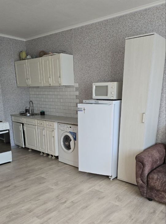 В квартире сделан косметический ремонт, она полностью меблирована и готова к комфортному проживанию. На кухне и в комнате есть вся необходимая мебель. Из бытовой техники в вашем распоряжении холодильник, телевизор и стиральная машина. Санузел совмещенный, с ванной.