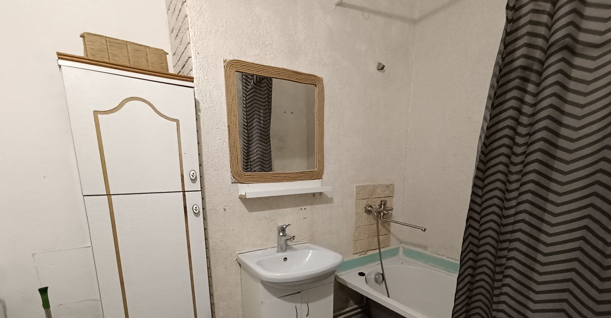 Светлая, просторная студия готовая к проживанию. Есть стиральная машина, холодильник, большой диван, кухонный гарнитур. Окна выходят на восток. лоджия остеклена. Подойдет студентам или молодой семье.