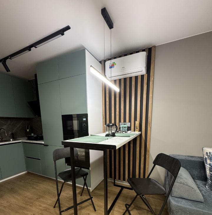 Квартира выполнена в дизайнерском стиле, что придаёт ей особый шарм и комфорт. Здесь есть всё необходимое для проживания: кондиционер, холодильник, посудомоечная машина, телевизор и стиральная машина. Ванная комната оборудована ванной, а окна выходят во двор, что обеспечивает тишину и спокойствие. В комнате и на кухне имеется вся необходимая мебель, поэтому можно сразу заехать и жить.