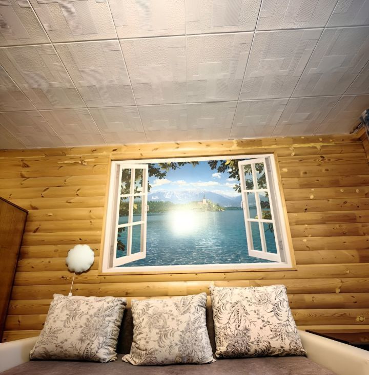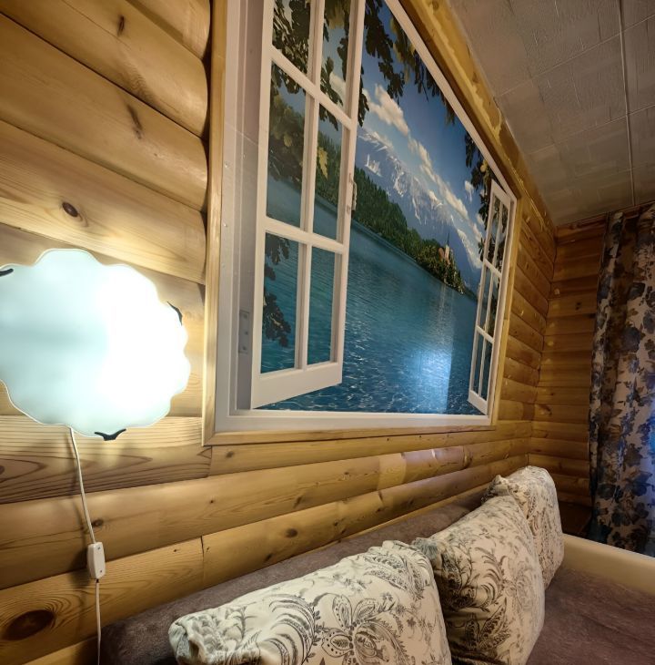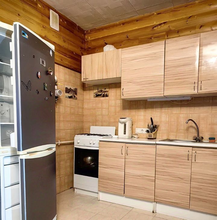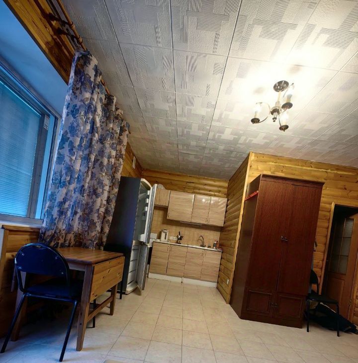 Стены дерево ( блокхауз) мебель-кухня, 2 шкафа, диван, холодильник, плита, стиральная машинка, телевизор, роутер ростелеком.
