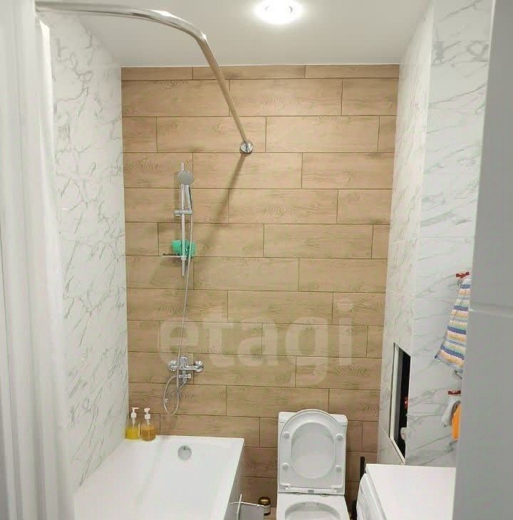 В квартире есть все необходимое для комфортного проживания: кухонная и комнатная мебель, холодильник, микроволновка, индукционная варочная плита, большой диван, стиральная машина. Санузел совмещенный, оборудован ванной, унитазом, раковиной с большим зеркалом. Все выполнено в современном стиле, что создает уютную атмосферу. В доме работают два лифта — пассажирский и грузовой, а также предусмотрен пандус для удобства.