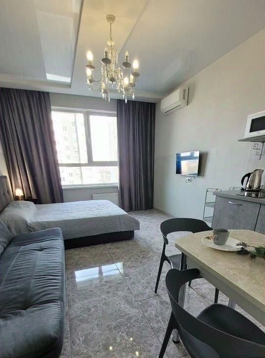 В квартире выполнен качественный евроремонт, что делает ее готовой для комфортного проживания. Пространство студии продумано до мелочей: здесь есть вся необходимая мебель как в жилой зоне, так и на кухне. Квартира полностью укомплектована бытовой техникой: кондиционер, холодильник, телевизор и стиральная машина. Санузел совмещенный, Окна выходят во двор, что обеспечивает тишину и покой.