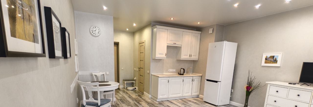 Сдаётся стильная квартира-студия с современным ремонтом на длительный срок. Развитая инфраструктура, 10 минут до метро. Аренда за проживание на короткий срок будет выше и обсуждается отдельно. Залог. Курение и проживание с животными запрещены. Коммунальные услуги оплачиваются арендатором по счётчикам. Квартира расположена на 5 этаже монолитного дома с двумя пассажирскими лифтами. В доме есть подземная парковка и открытая территория во дворе. Консьерж. В квартире выполнен евро ремонт, что видно по современному дизайну и качественным материалам. Просторная гардеробная позволяет удобно хранить вещи. В наличии вся необходимая мебель: шкафы, кровать и обеденный стол. Кухня оборудована всем необходимым: холодильник, плита, микроволновая печь и стиральная машина. В санузле установлена современная сантехника и душевая кабина. Для вашего удобства подключено кабельное/цифровое ТВ.