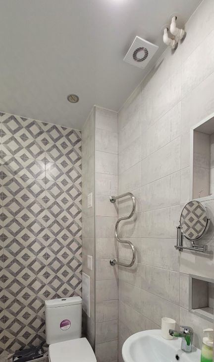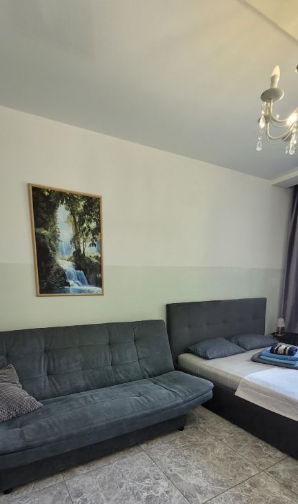Уютная квартира, есть все необходимое для проживания. На полу керамогранит, стены- обои под покраску. Из техники имеется-